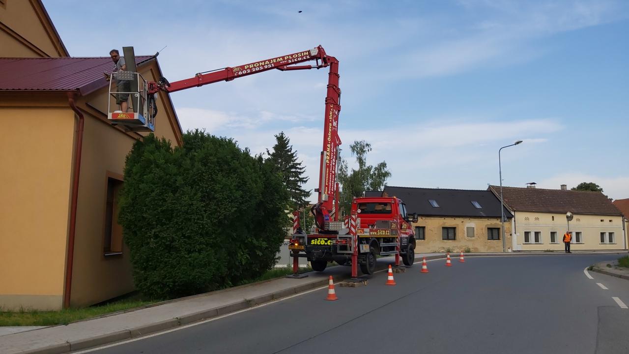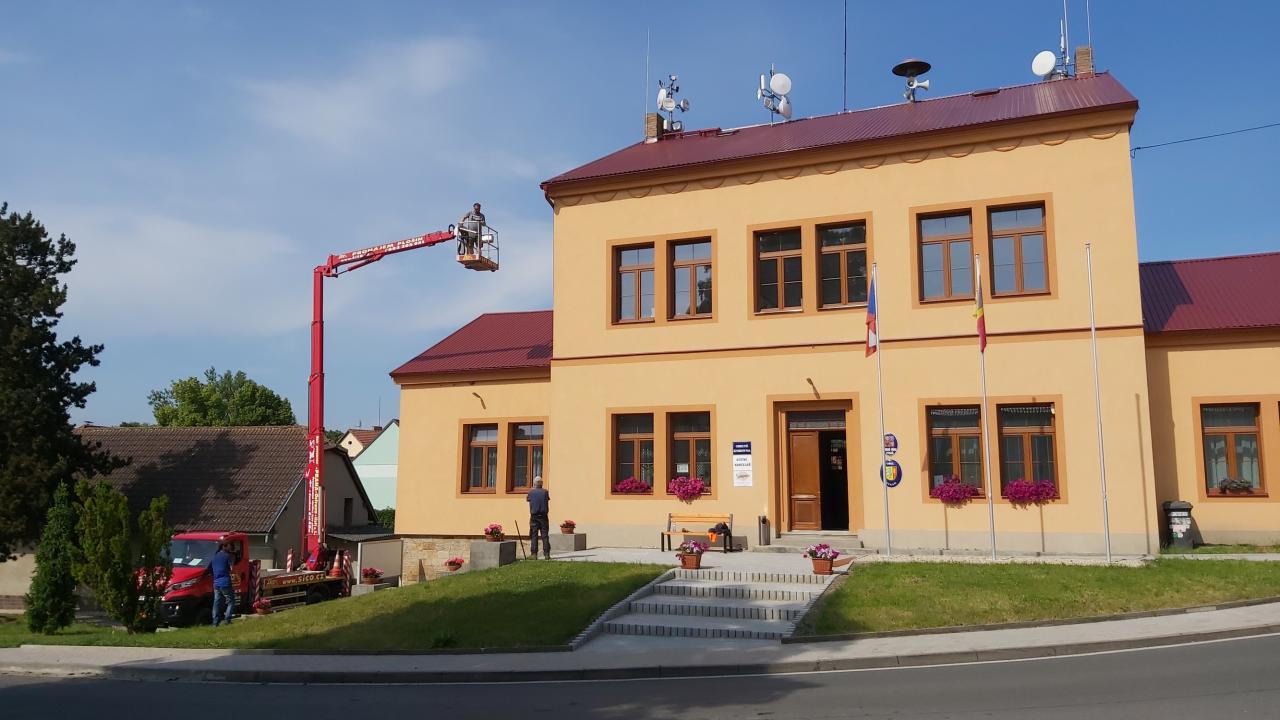 Budova OÚ - čištění okapů a oprava...